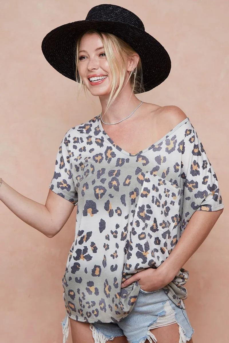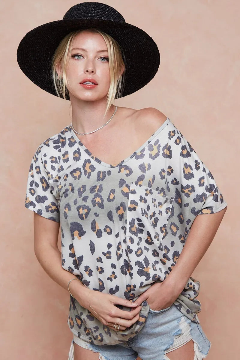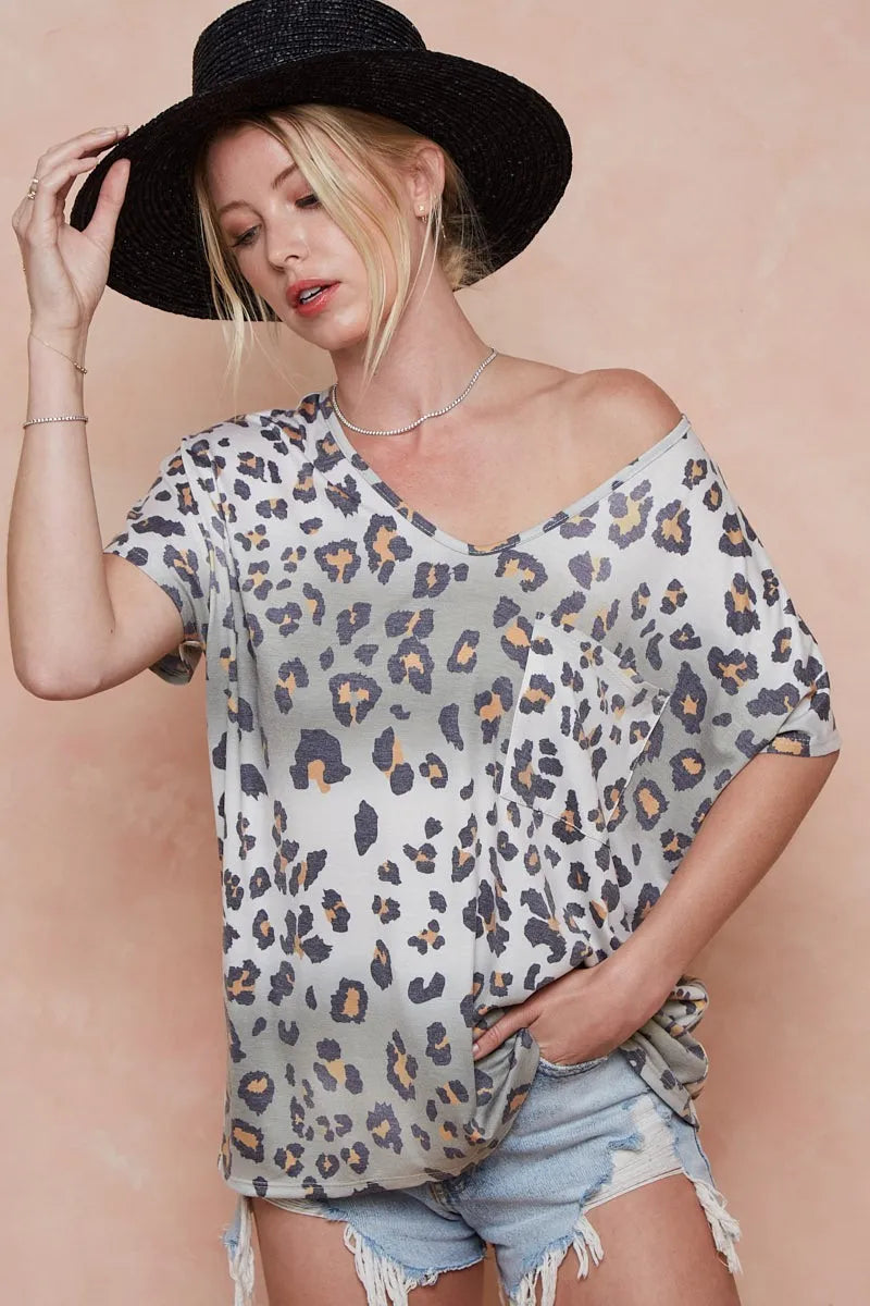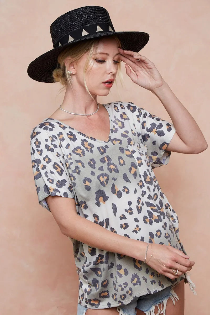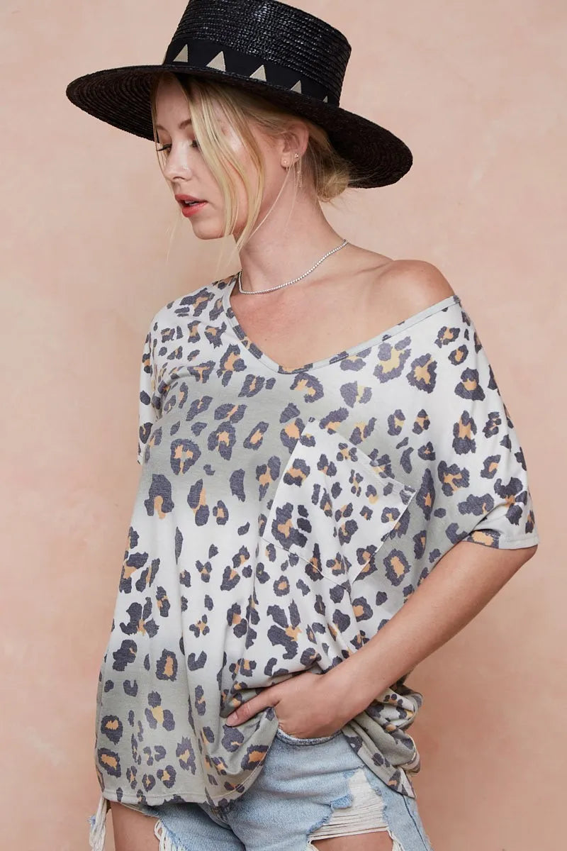 BiBi Tie Dye Leopard Printed Jersey with Front Pocket